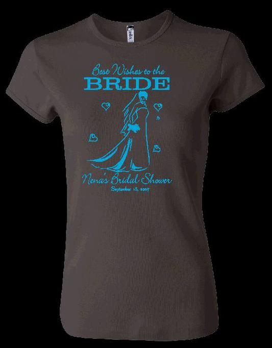 For easy Bridal t-shirt prices, email us a copy of your logo, simply select the get a quote button and attach your design.