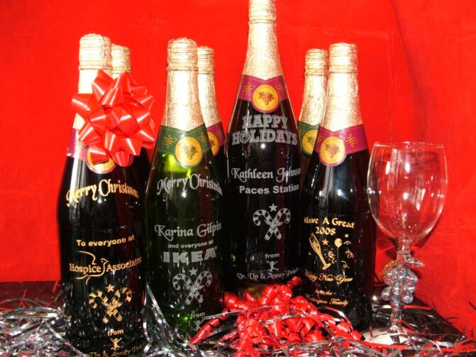 Add your own custom, personalized message to any etched wine or champagne bottle for a one of a kind gift idea that will be remember forever.